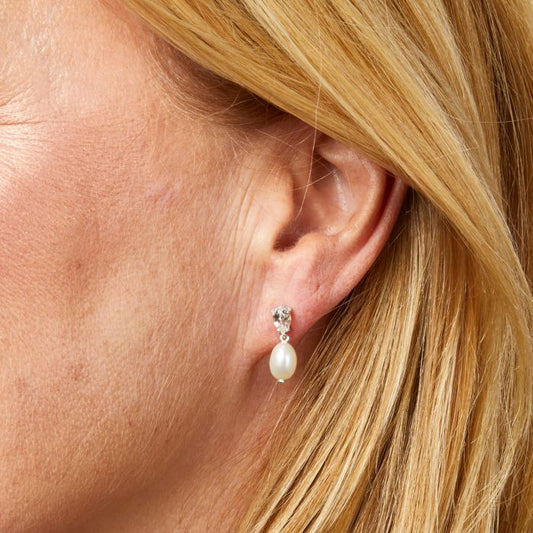Baroque Pearl and Topaz White Gold Drop Earrings