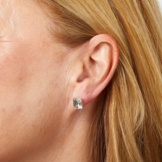 Elongated Octagon Aquamarine Gold Stud Earrings